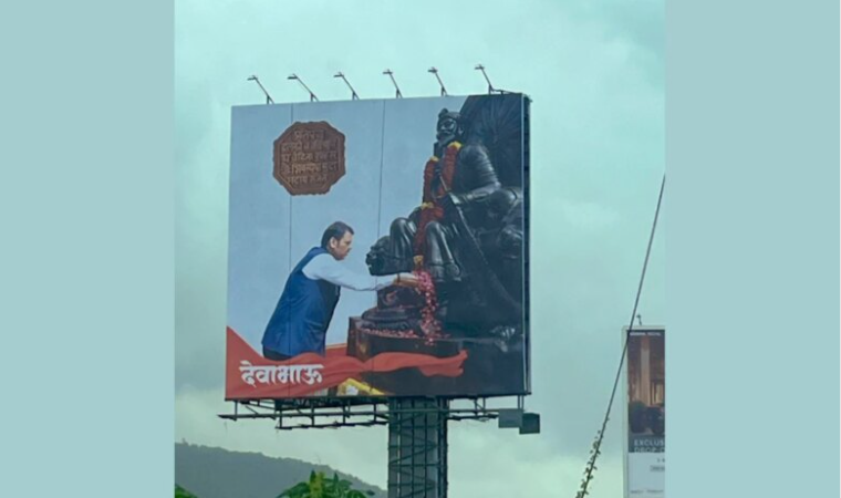 मुंबई: मुख्यमंत्री देवेंद्र फडणवीस ने “देवाभाऊ” शीर्षक का उपयोग करते हुए अपने प्रचार के लिए शहर में कई बिलबोर्ड लगवाए।