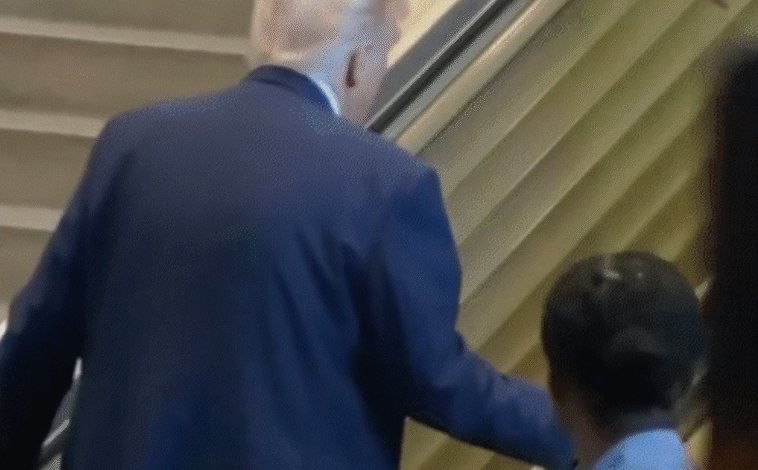 एस्केलेटर खराब होने के कारण ट्रम्प को सीढ़ियों से चढ़कर UN हॉल तक पहुँचना पड़ा। -
